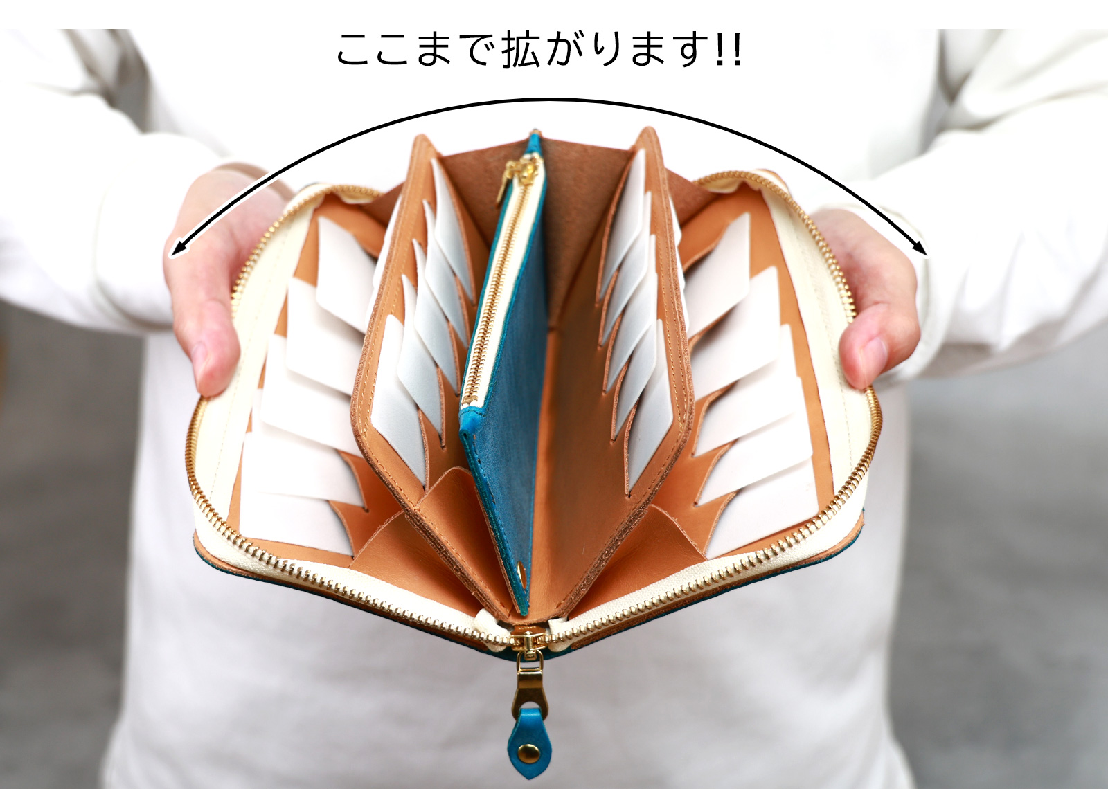 「全てのカードをまとめて持ち歩きたい」という人の要望に応えるお財布です。