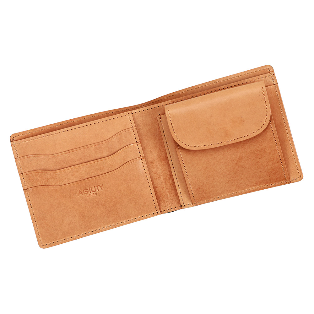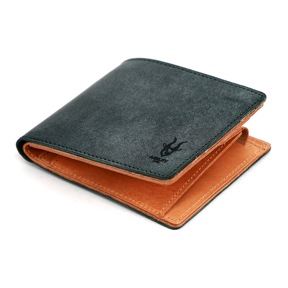 - スナップボタン等のない、シンプルな構造の二つ折り財布です。