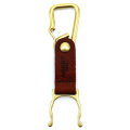 お散歩やアウトドアに便利なペットボトルホルダーです。ペットボトルのネック部分に、ホルダー金具を挿し込んで取り付けます。反対側には少し変わった形状のカラビナ付き。パンツのベルトループに通したり、バッグの持ち手や金具に取り付けて使用します。(1cmくらいの太さまで通すことができます。)ペットボトルの中身を飲むときは、ホルダーからボトルを外すか、カラビナごと、取付位置から外して飲んでください。※一部メーカーのボトルでは、ネックの太さが異なるため、取り付けできない場合があります。※激しい運動をすると、ボトルが外れる恐れがありますのでご注意ください。■素材:牛革/■サイズ:W3.5 × H13 × D1(cm)/■重量:約45g/■日本製【ペットボトルホルダー / ペットボトル / 500ml / 真鍮 / 牛革 / レザー / 本革 / ペア / プレゼント / 革小物】