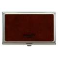 - シンプルなステンレス製のカードケースに、AGILITYのロゴ入りレザーを貼りました。