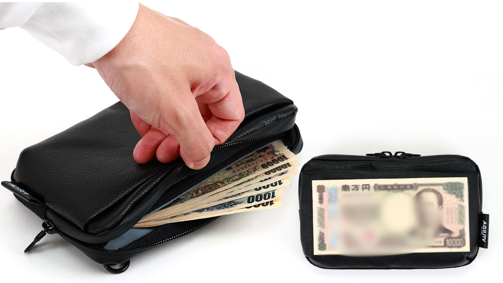 - 一万円札も折らずに入る横幅