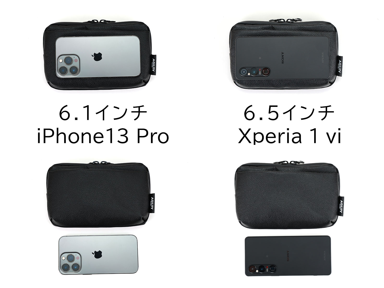 - 6.9インチの大型スマホも収納OK