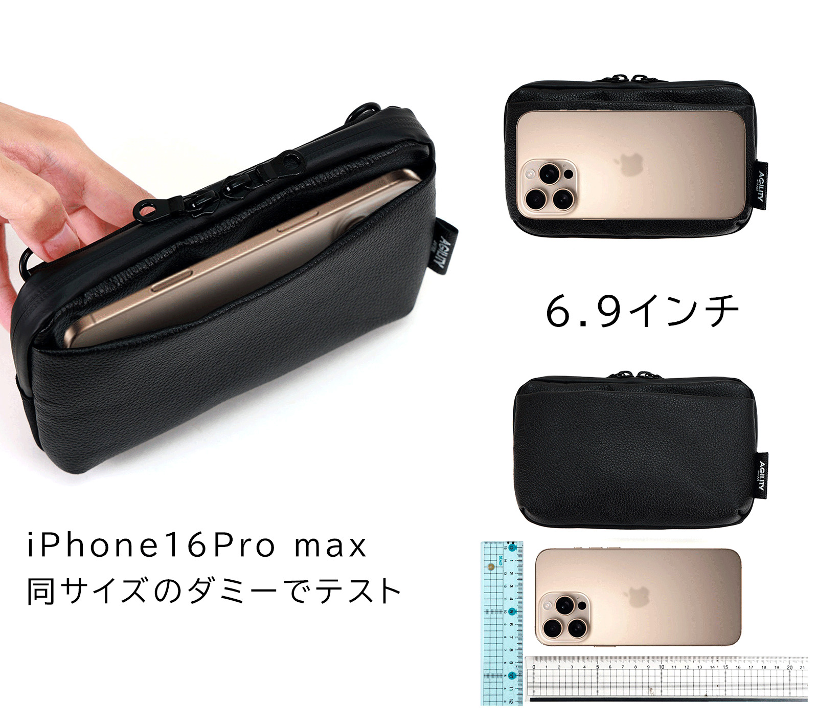 横幅いっぱいですが、「iPhone 16Pro max / 6.9インチ」の収納もテスト済みです。