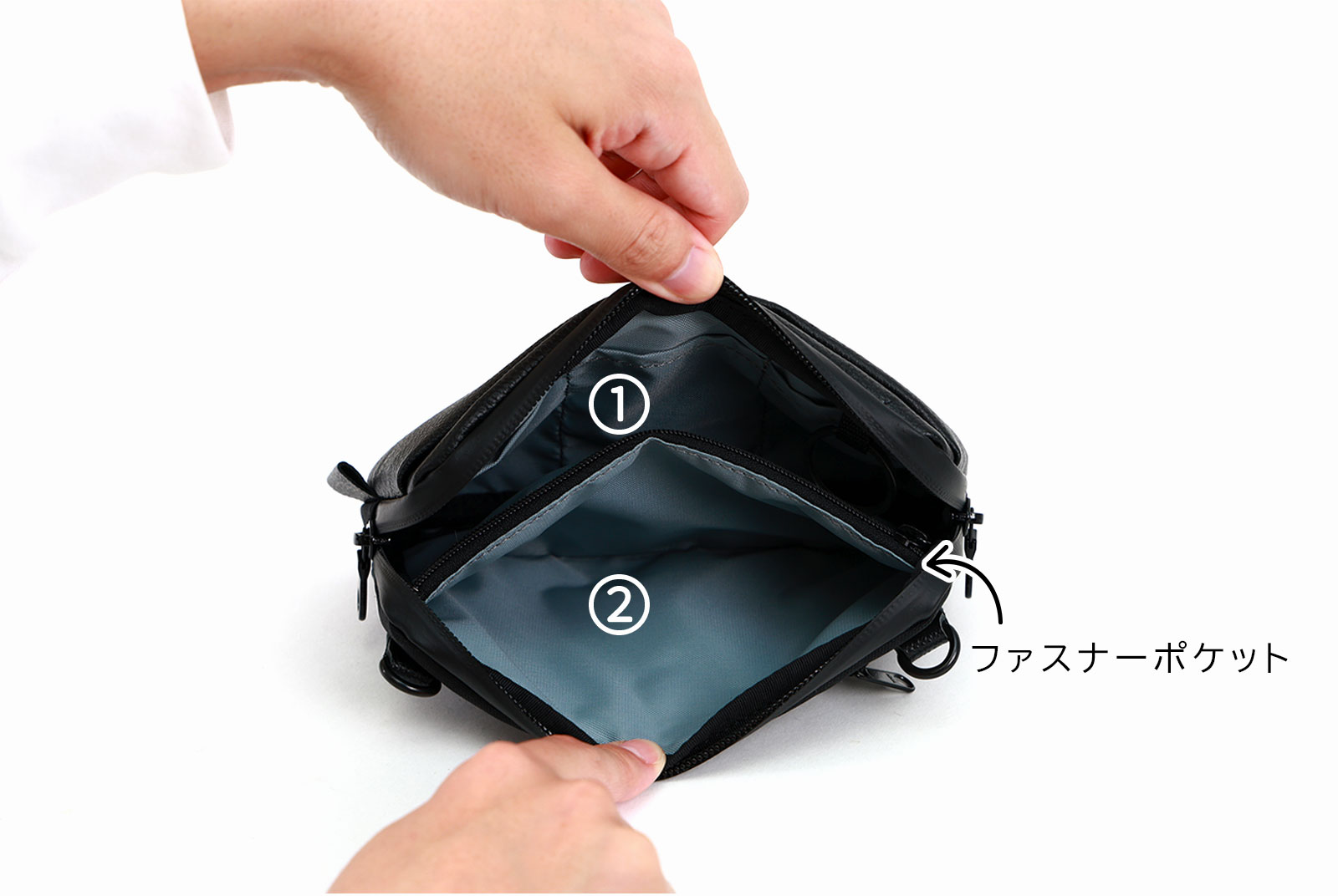 - ラウンドファスナーの横型ミニショルダー