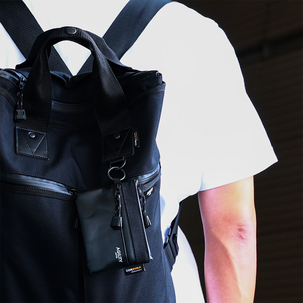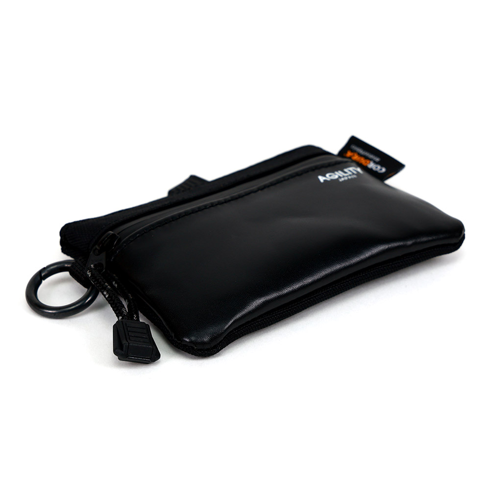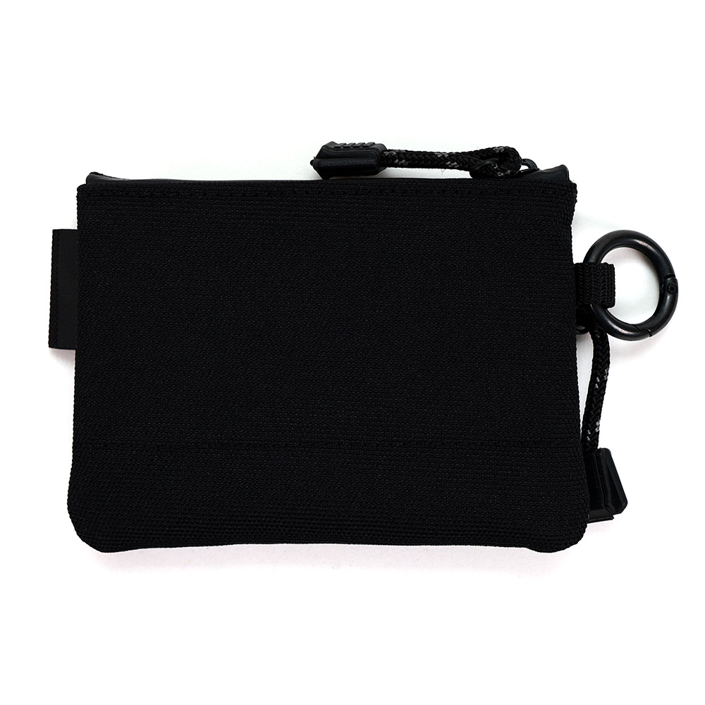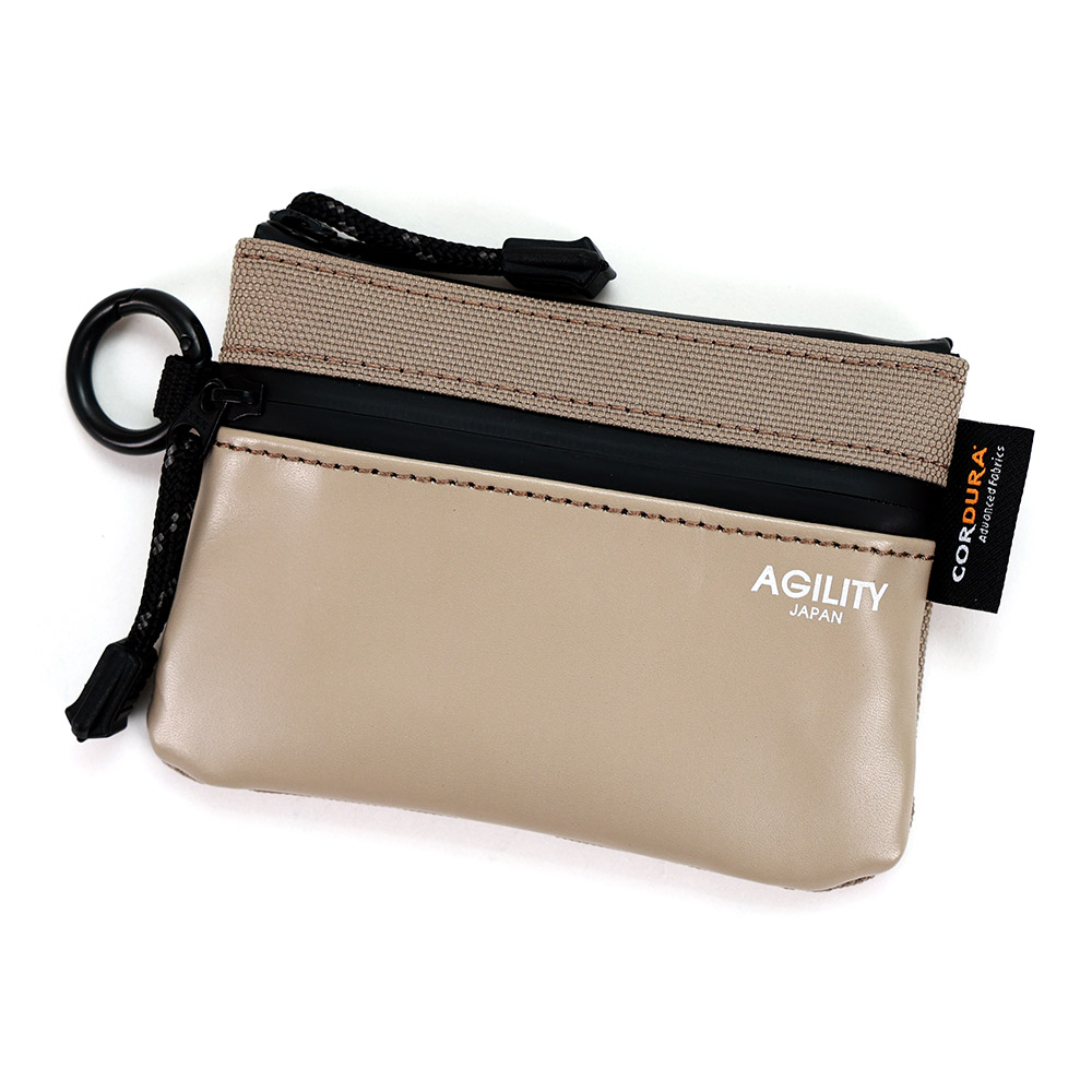 キャッシュレス時代に辿り着いた次世代ポーチウォレットです。 【タフ×機能性】武骨なワークテイストを撥水ハイテク素材のコンビで都会的なイメージに仕上げました。 カードサイズのファスナーポーチをペースに撥水スムースレザーと撥水コーデュラ®ファブリックを用い、「タフで永く使える」 をコンセプトに「財布として使えるポーチ」を開発しました。 外側の浅いファスナーポケットには小銭が20枚程度入ります。(小銭を入れないときはカード収納可)本体トップのファスナーを開けると、奥には浅めの仕切りがあり、カードが5~6枚程度重ねて収まり、浅いので出し入れがしやすくなっています。 本体深いスペースには2つ折りにしたお札が入ります。もちろん財布としてだけではなく、小物用ポーチとしても使えます。撥水スムースレザー×撥水コーデュラ®ファブリック×YKK止水ファスナーのコンビで、表面は水をはじき急な雨やアウトドアなどでも重宝します。(完全防水ではありません)サイドについているリングカラビナは自由に着脱ができ、バッグやパンツに提げたり、ネックストラップなどにつければネックウォレットに、先端に鍵をつけたりと自由に機能拡張ができます。 ■素材:ナイロン・牛革/■サイズ:W12×H9×D1.5(cm)/■重量:約40g/■日本製 【財布 / ミニ財布 / カラビナ / 吊るす / ポーチ /ミニポーチ / 撥水 / キャッシュレス / 小さめ /コンパクト】