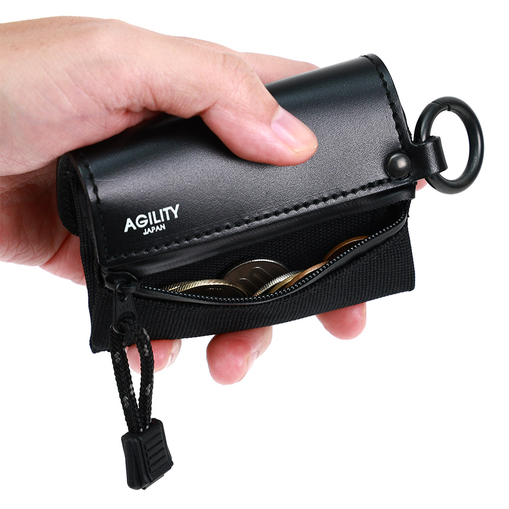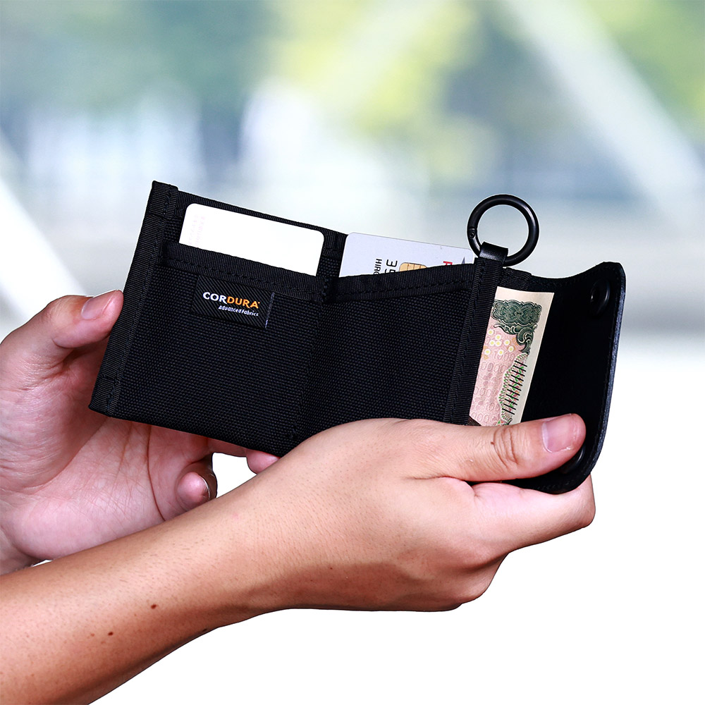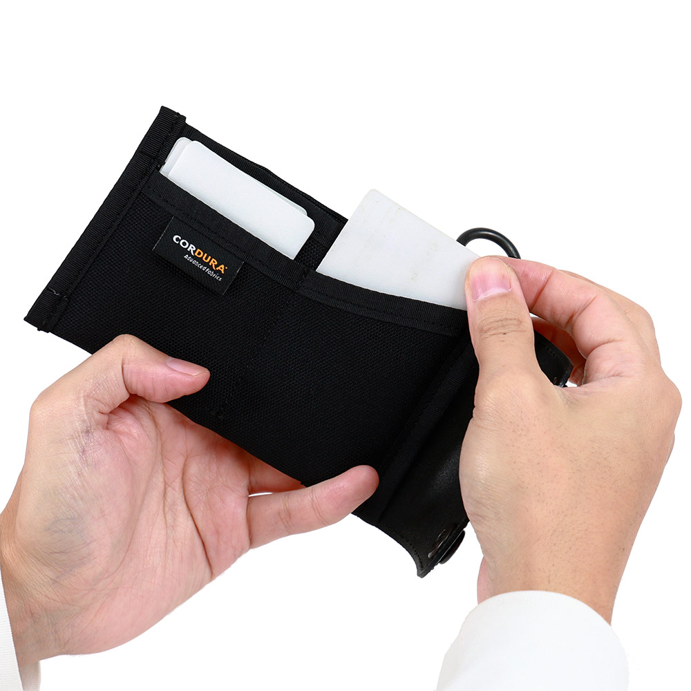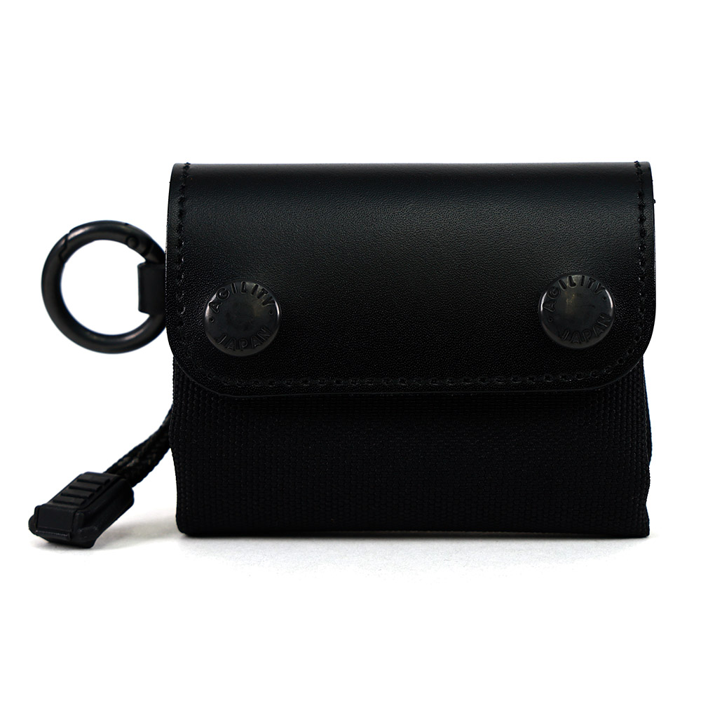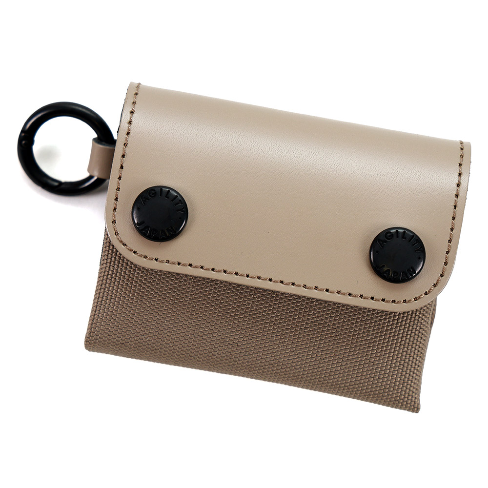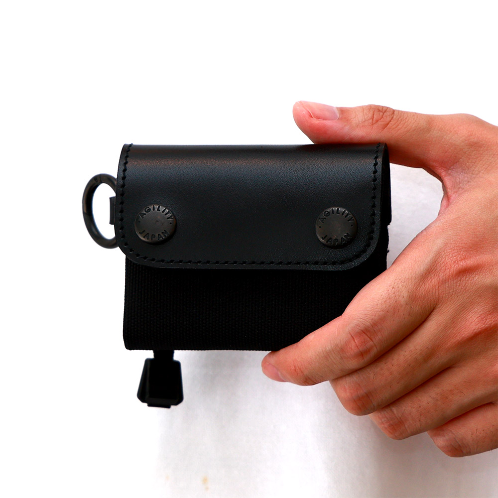 - 撥水レザー×撥水コーデュラを合わせたハイブリッドなミニ財布。