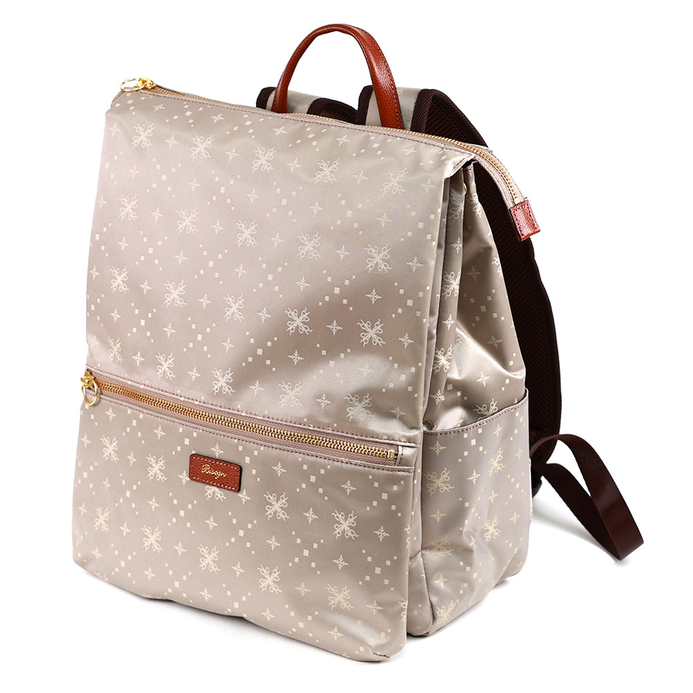 適所に配置したポケットが魅力な軽量リュック。本体はファスナーを開けると前後に大きく2つの部屋に分かれています。本体口は両サイドについているボタンを外せば、口を大きく開くことができます。インナー背面側には、A4サイズのファイルやノートパソコン、タブレットなどが収納できるクッション材入りのポケットがついています。2つの部屋をつなぐ中間のファスナーポケットには、小物類を入れておくことができます。インナー前側の部屋にも、A4サイズが収納可能です。本体外側には3つのポケットがついています。前側のファスナーポケットには、長財布やスマホを入れておくと出し入れに便利です。本体両脇にもポケットがついており、パスケースやスマホ、500mlのペットボトルなどが入ります。右側のポケット口付近にはDカンがついており、弊社のリールパスケース・シークやピストのストラップを括り付けられるようになっています。ファスナーヘッドをリングタイプにしているので、こちらにもストラップやキーホルダーなどを取り付け可能です。ショルダーベルトはクッション材が入っているので、肩への負担を軽減します。ナイロンメインにすることで、重さを感じないくらい軽いのも特徴です。 ■素材:ナイロン/■サイズ:W29 × H35 × D14.5(cm)/■重量:約400g/■日本製 【リュック / サック / レディース / ナイロン / 軽量 / かるい / A4 / スクエア】