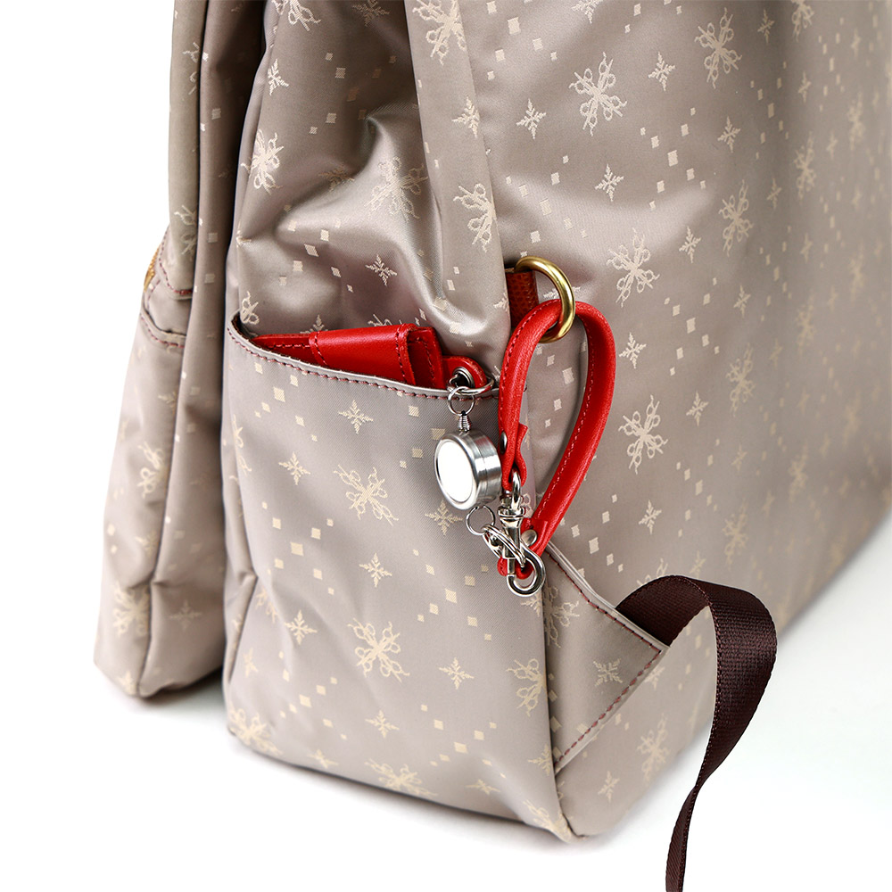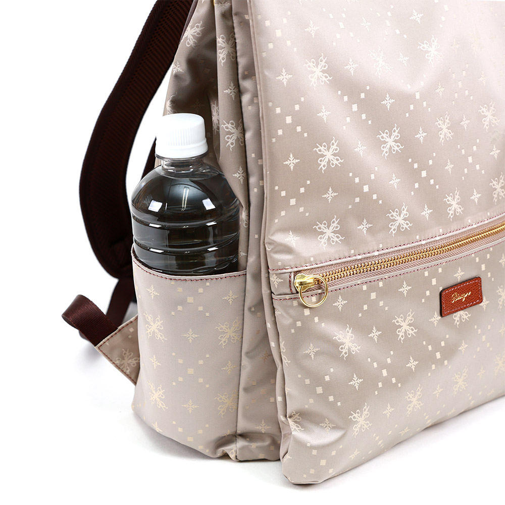 - 両サイドのポケットには、500mlのペットボトルや 折りたたみ傘、スマートフォンなどが収納可能。
