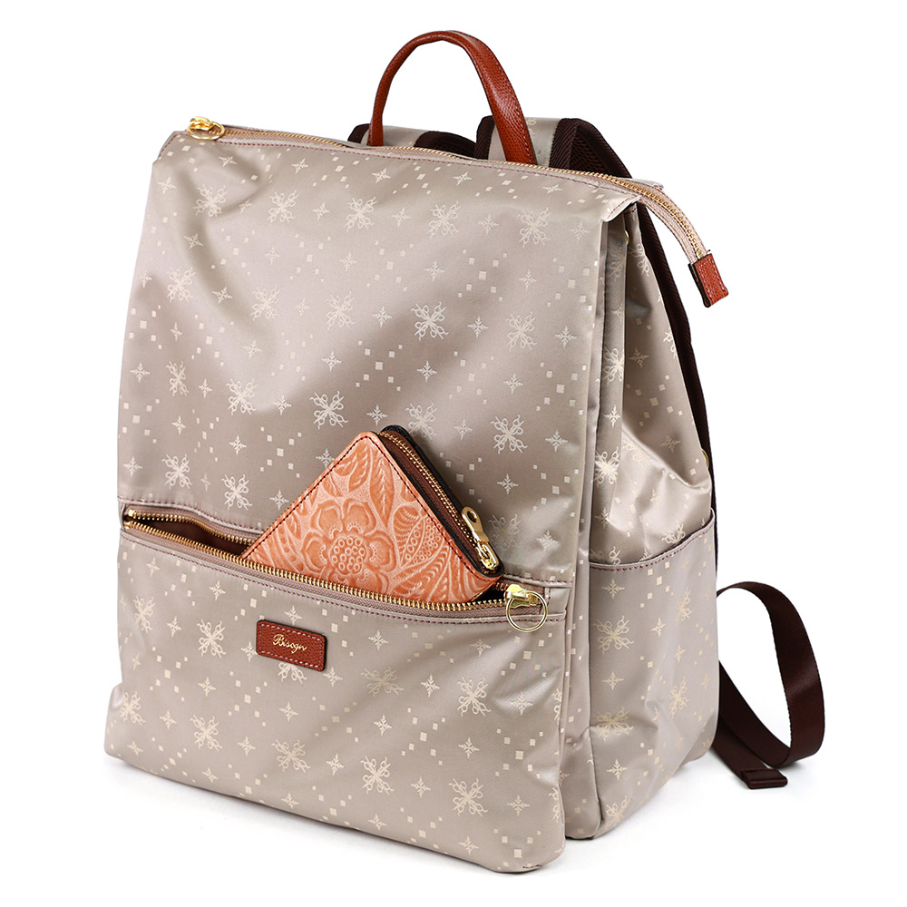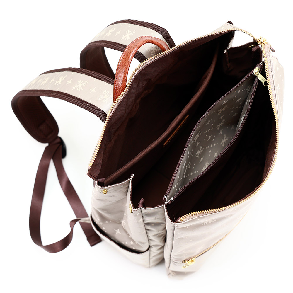 - 前面のファスナーポケットは長財布も収納OK。 出し入れする機会の多い小物類の収納に。