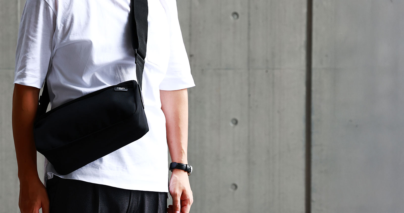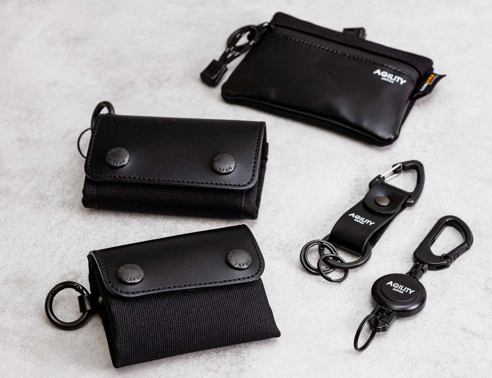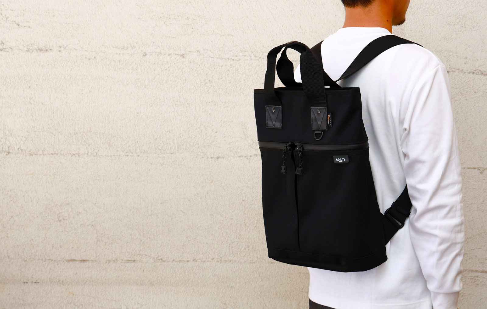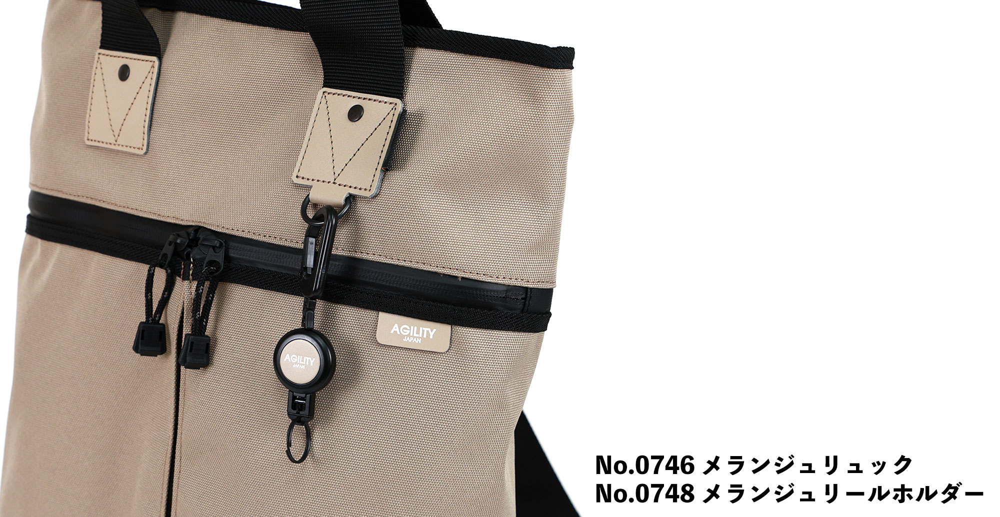 機能的で軽量なアウトドアテイストのアイテムを撥水コーデュラファブリック × 国産撥水レザーのコンビで雨にも強く、軽さはそのまま高級感を出し、都会的なイメージに仕上げました。