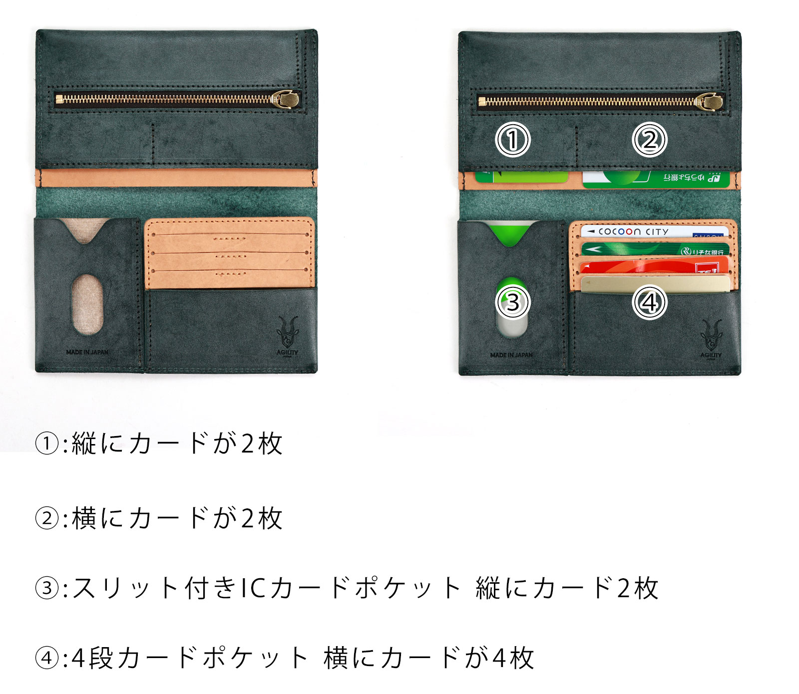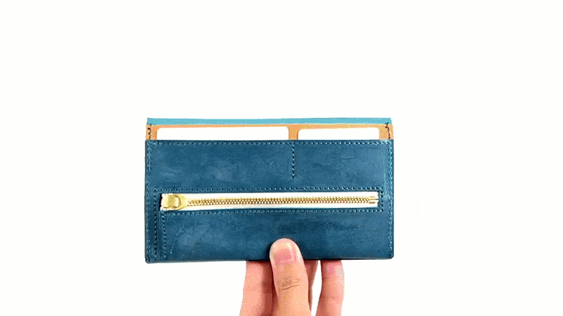 商品説明: 観音開きでスムーズ会計・小さな極薄長財布です。 アシンメトリーなデザインで4か所に分かれたカード入れはカードをわかりやすく仕分けできます。 本のように開けると左側が札入れ、右側がファスナー小銭れの設定です。 左側の札入れは上下を縫わずに折り曲げる構造にすることで、お札ギリギリのコンパクトサイズにしています。 札入れ中央を観音開きにすることで、コンパクトにもかかわらず札の出し入れがスムーズでストレスがないように考えました。 手前の4段カード入れの下半分は縫わずに浮かせることで、お札を差し込みやすく、且つ引き出しやすくしています。 左側の4段のカード入れに4枚のカード、上部のスライドホール付きのカード入れには2枚のカードが入ります。 右側のマチ付きファスナーポケットには15~20枚程度の小銭が入ります。 浅く口が広いのに加えマチもついているので、小銭の出し入れがしやすくなっています。 小銭入れ裏のスペースを利用して、下層にはカードが縦向きに2枚、上層には横向きに2枚入ります。 財布を持ち歩く際、小銭が下層に集まる想定にしたとき、小銭と下層のカードが重ならない配置にすることで、中身を入れてもなるべく薄さをキープできるように工夫しました。 右側の一番壁側のスペースにはレシートなどが収納できます。(こちらのスペースにはお札は入りません) ■素材:牛革/■サイズ:W16.5 × H9.5 × D1.5(cm)/■重量:約90g/■日本製 【札入れ / 極薄財布 / 長財布 / 極薄 / 小さい / 薄い / コンパクト / 短い / 革 / 本革 / レザー / 薄い財布】