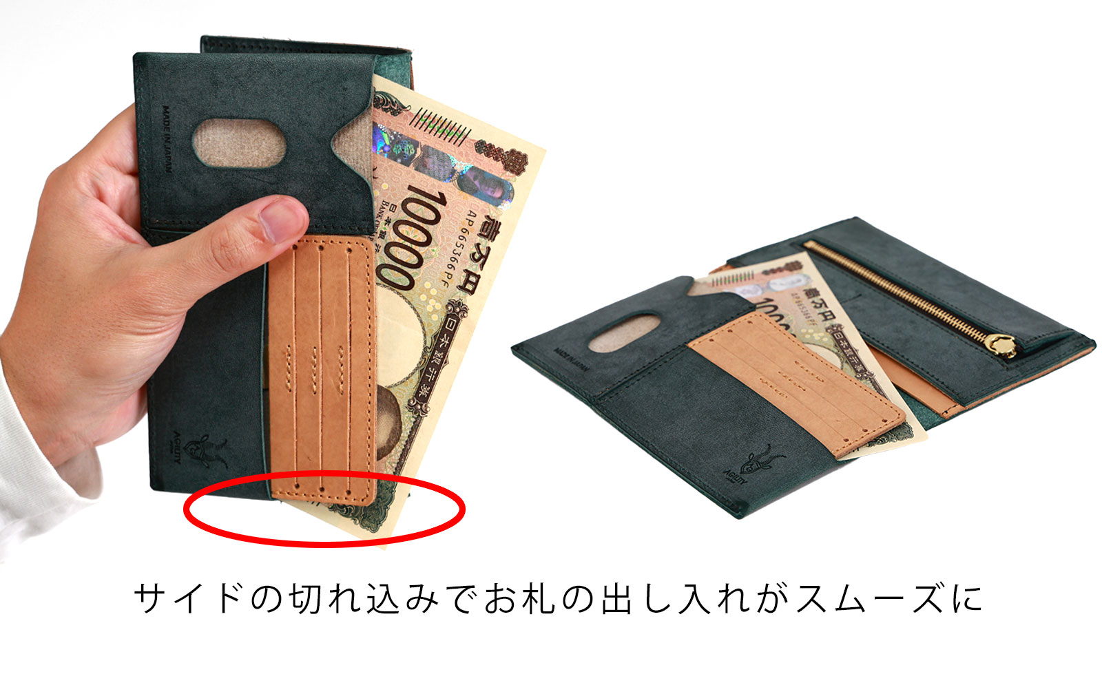 • 『プラン』(全5色)ロロマ/まるで観音開き カットした札入れでスムーズ会計・小さな極薄長財布【AGILITY affa(アジリティ アッファ)】(0184)