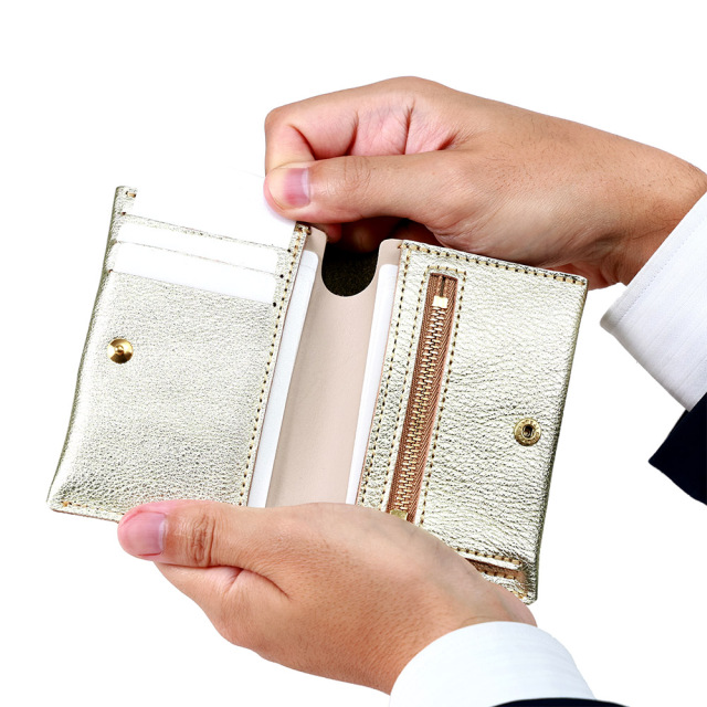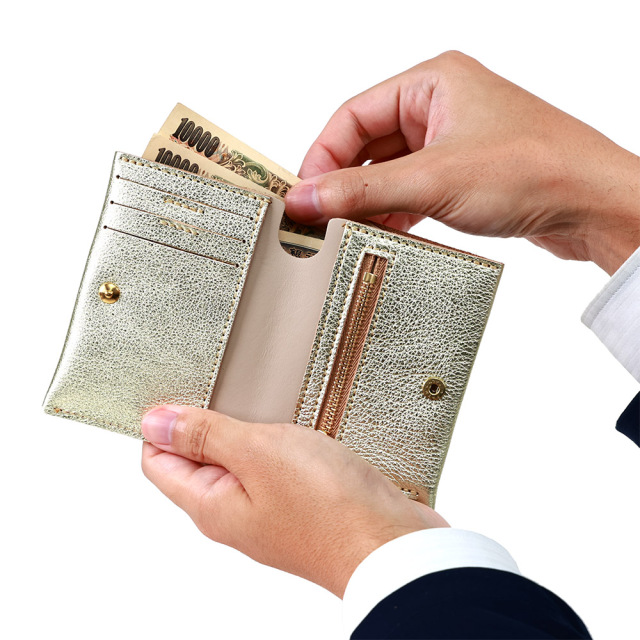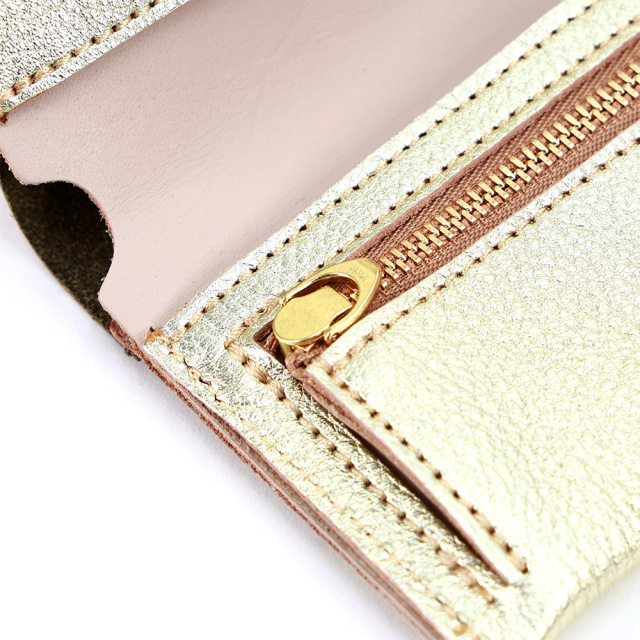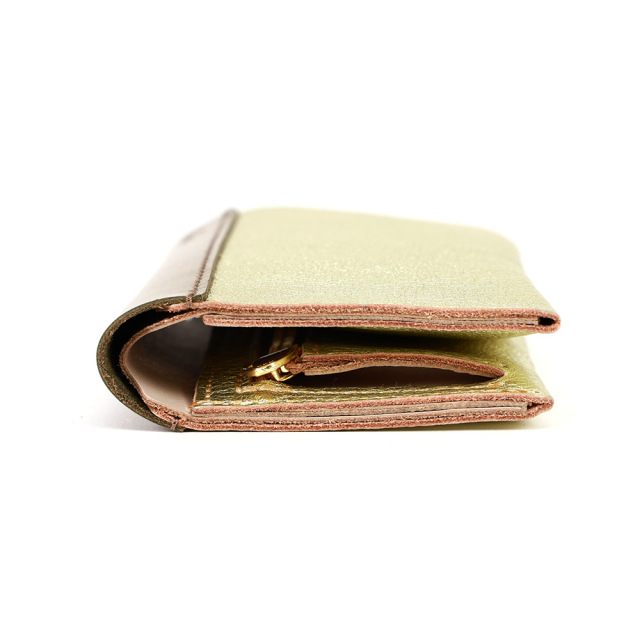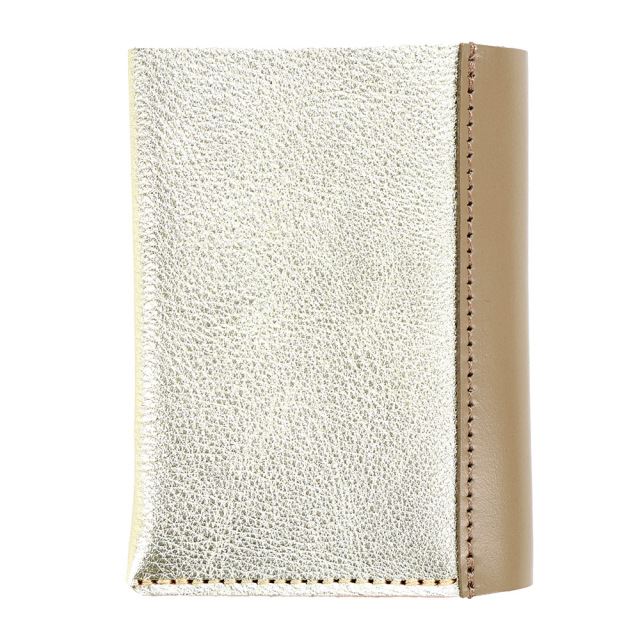 植物タンニンでなめした牛キップをベースに、東京の工場で加工した革です。革の表面を箔加工した後に、タイコと呼ばれる大きなドラムに水と一緒に入れて回し、革を縮めて表面にシュリンクを作っていきます。箔加工は革らしくないイメージがありますが、この革はタンニン鞣しとシュリンク加工をすることで、革らしい仕上がりになっています。 【注意】箔加工の性質上、度重なる擦れや強い摩擦などによって使用していくうちに箔が剥がれることがあります。予めご了承ください。