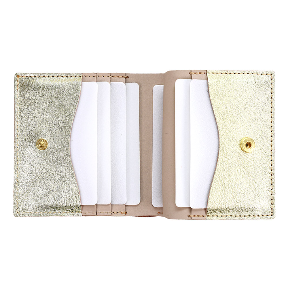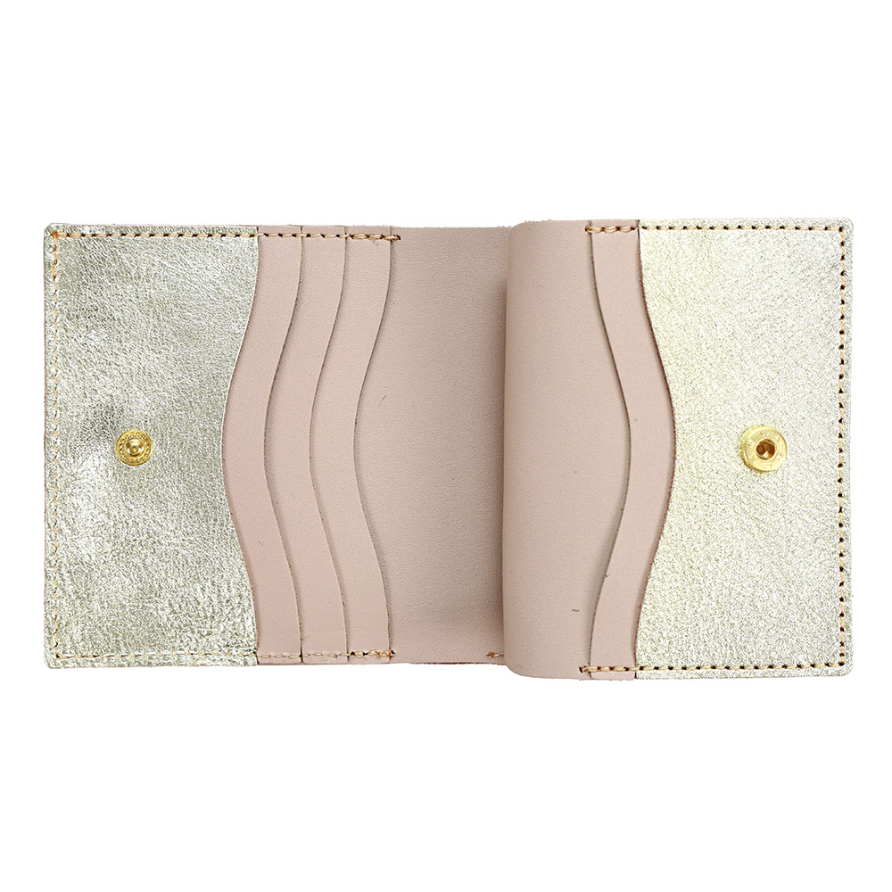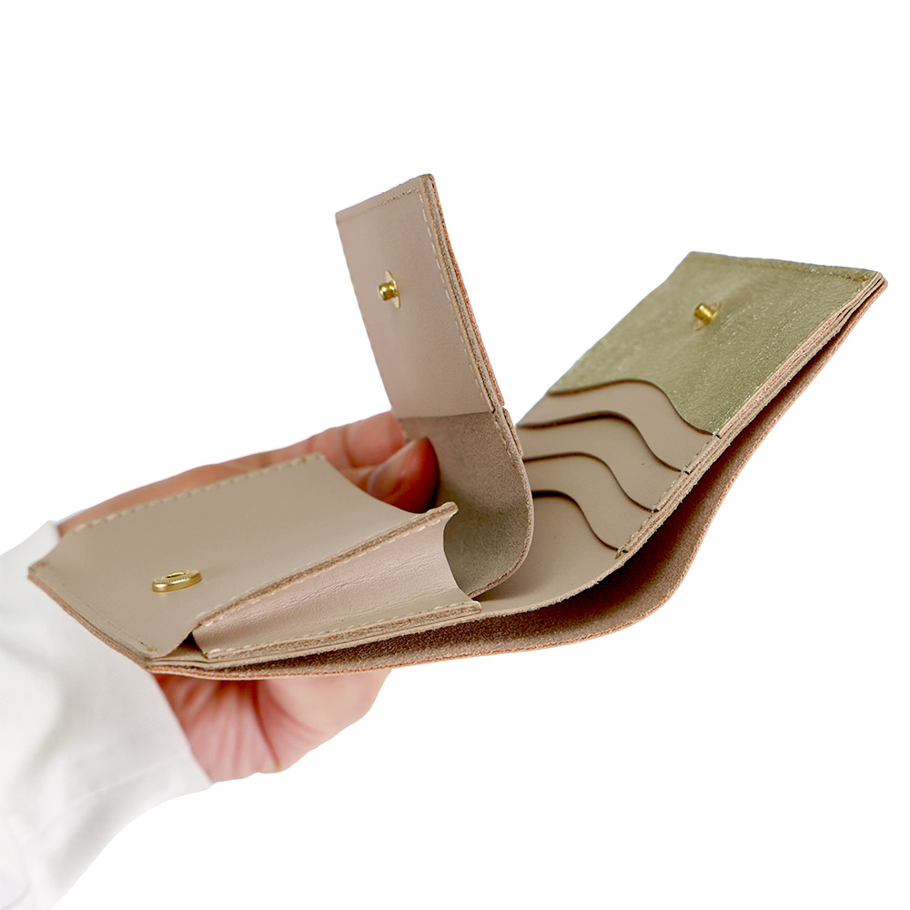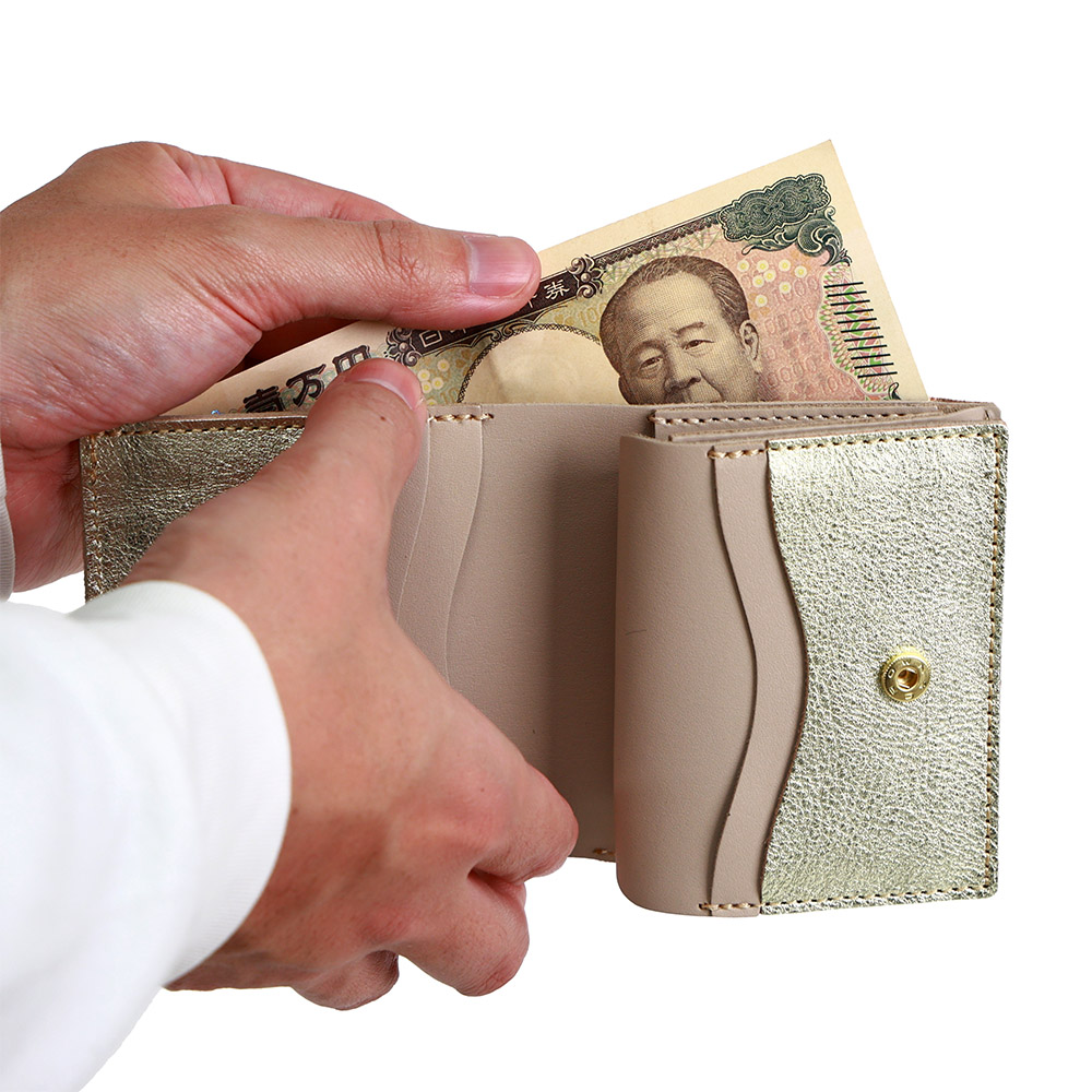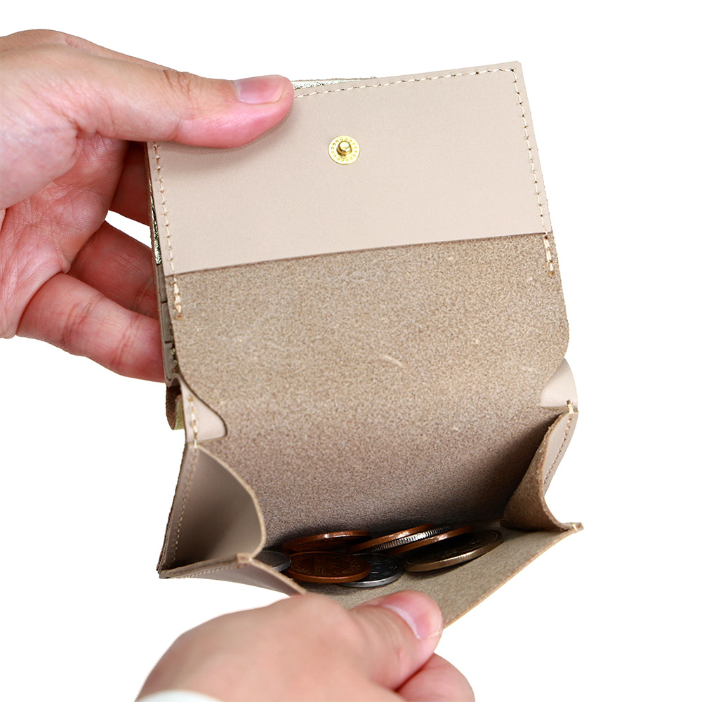 植物タンニンでなめした牛キップをベースに、東京の工場で加工した革です。革の表面を箔加工した後に、タイコと呼ばれる大きなドラムに水と一緒に入れて回し、革を縮めて表面にシュリンクを作っていきます。箔加工は革らしくないイメージがありますが、この革はタンニン鞣しとシュリンク加工をすることで、革らしい仕上がりになっています。 【注意】箔加工の性質上、度重なる擦れや強い摩擦などによって使用していくうちに箔が剥がれることがあります。予めご了承ください。