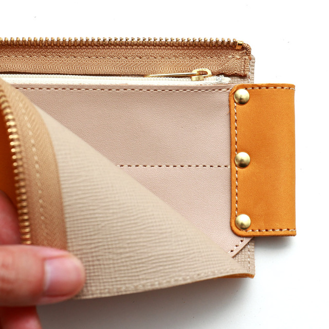 コンビなめしですが、タンニンを多めに含ませて鞣しているため革を擦り合わせるといい音がなります。