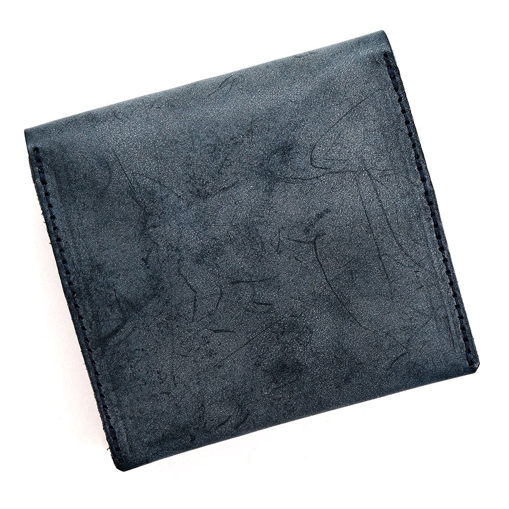 ロウ引き革の一番の特徴は、白いモヤに覆われた雰囲気のある表面感にあります。