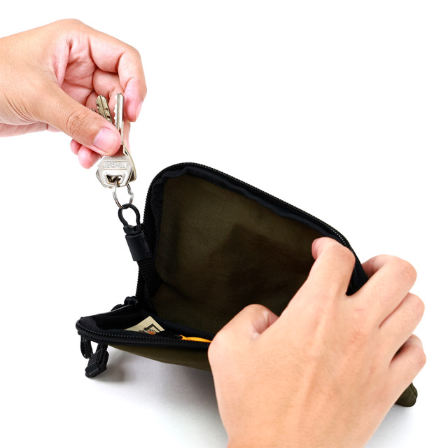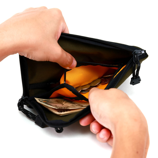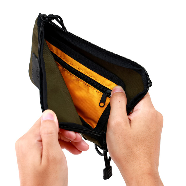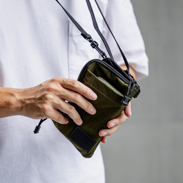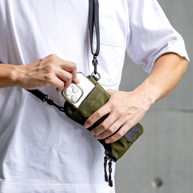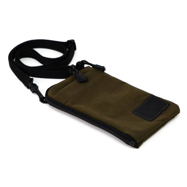 塩縮加工を施し、和紙のようなドライなタッチ感が特徴のシワナイロンです。塩縮加工とは、繊維を特殊な薬品で膨潤させることで糸に膨らみを持たせ、繊維の体積が増えることで、その分生地が縮んで詰まったような風合いに 仕上げすることが出来る加工です。生地の密度を上げることで、通常のナイロンよりも強度があります。タスラン加工糸(撚りをかけないふっくらと柔らかな質感が特長の糸)を使用しており、綿ライクな仕上がりで帆布のよう見みえますが、とても軽いのも特徴です。