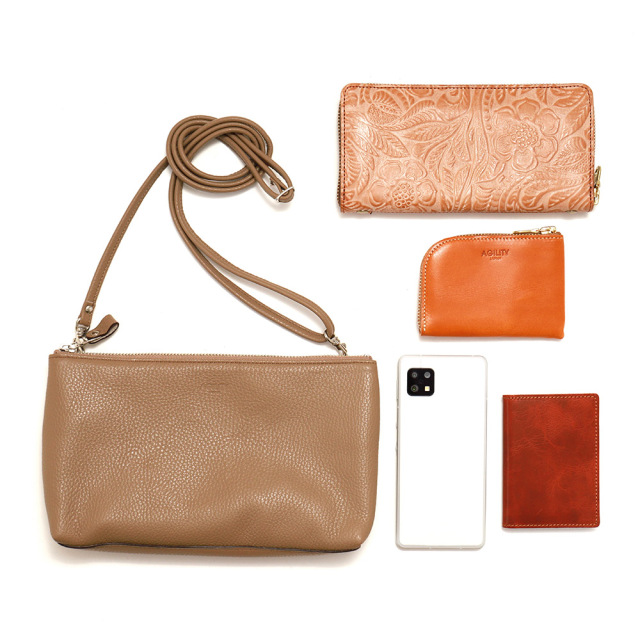長く使っていても変色することがなく、表面にはシュリンクの型押しを打ってあるので傷が目立たないのがポイントです。
