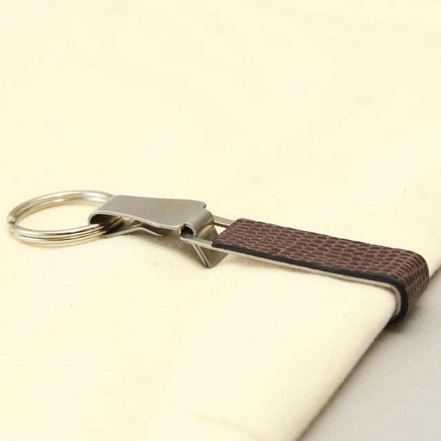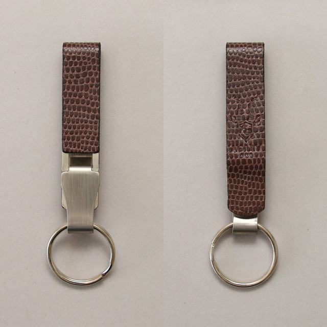 墨田区の染革工場にAGILITYが一から依頼した、メイドイン東京のオリジナルレザーです。タンニンでじっくりと鞣した牛キップを、ドラムと呼ばれる大きな樽の中に入れて回すことで、革全体が揉まれ柔らかさが生まれます。革の厚みを均一に揃えた後、リザード(トカゲ)の鱗模様を型押し(エンボス)した革です。全体に下色を吹き付け、凸部分のみを手作業で濃色に染めていく頭ハリという工程を経て、型押しに立体感を出しています。最後に高圧アイロンで表面に艶を与え、高級感とエレガントさを持った革に仕上げています。使っていくと艶があがり、より一層深い色に変化していくエイジングを愉しめます。細かい型押しのため、傷や汚れが目立ちにくいのも特長です。【アフターケア】乾拭き程度で良い状態を保てます。
