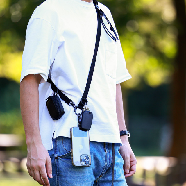 スマホを取り付ければ「スマホショルダー」としても使える便利アイテムです。 約120cm~160cmの間で長さ調節が可能なので、性別問わずお使い頂けます。