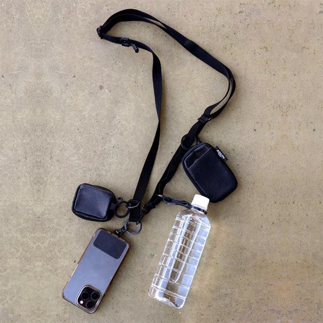 ライフスタイルに合わせ、鍵(キーケース)、コインケース、イヤホンポーチ、ボトルホルダー、などを自由な組み合わせで吊るすことができます。