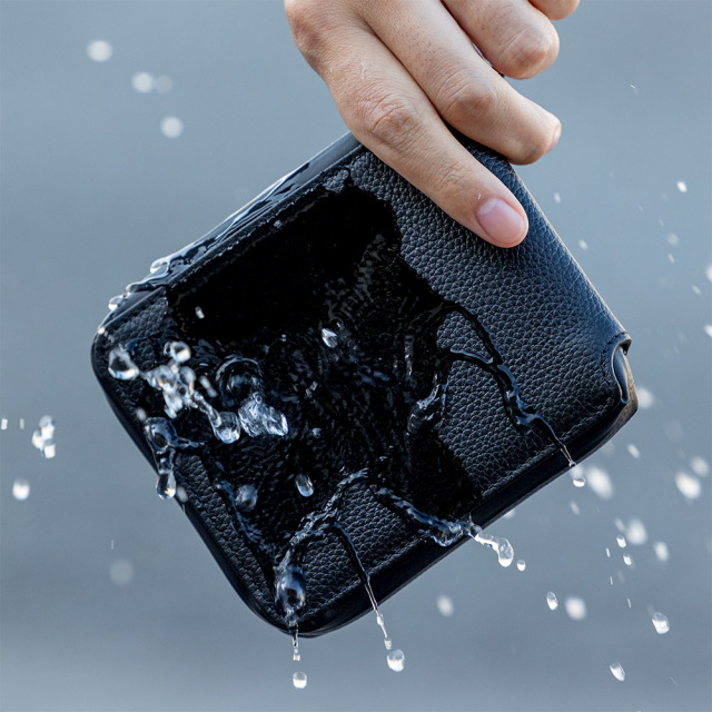 【SGシュリンク(WPラークマイルド)】姫路のタンナーにて、国産の牛革をクロームでソフトになめした下地を使用。 通常の撥水加工の革は表面だけ撥水剤を吹き付けるだけですが、この革は下色を染める段階でスコッチガードの撥水剤を革の芯まで染み込ませているので、表面だけの撥水加工に比べ強力で、撥水効果を長期持続させることができます。 表面は染料と顔料を使用しているセミアニリン仕上げなので、使っていても色の変化が少なく、常に新品と同じような感覚で使用できます。 シュリンクの型押しを施すことで、シックなイメージに。使っていても細かなキズなどはシュリンクに隠れて目立ちません。 ※スコッチガード™とはアメリカの3M社が展開する防水、防汚加工で、フッ素樹脂を付着させ防水効果をもたらす加工です。