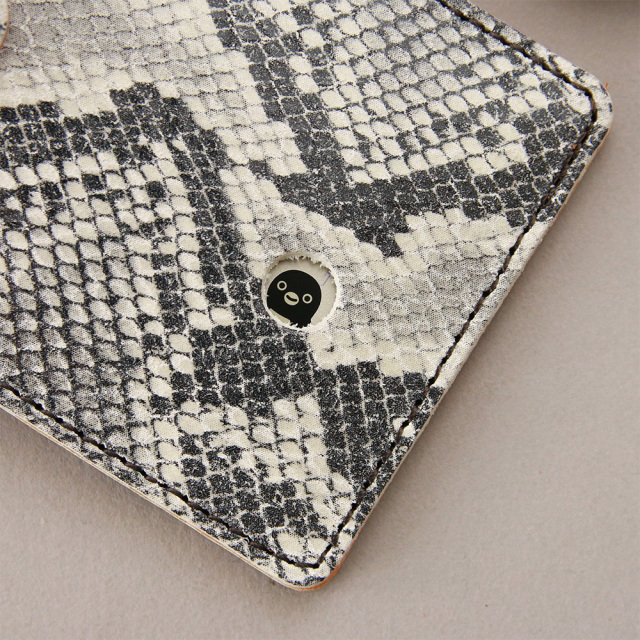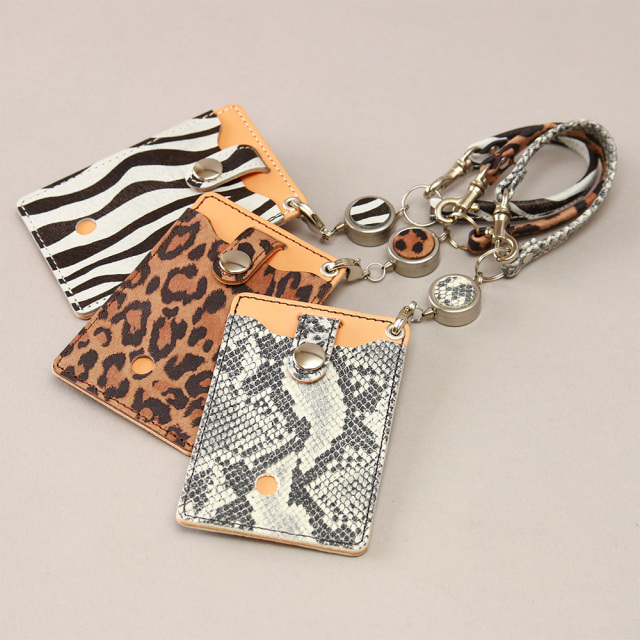 【アニマルプリントレザー】東京の下町墨田にある老舗の革加工工場にて、リアルなアニマル柄のプリントを施した牛革シリーズです。プリントがのりやすいように土台に使用する牛革は表面を軽くやすりで擦り、起毛革にしています。【パイソンプリント】蛇のうろこ状にカッティングされたパイソン柄のフィルムを革にそのまま圧着しています。【ヒョウ柄・ゼブラ柄プリント】アニマル柄の転写シートで革にプリントしています。