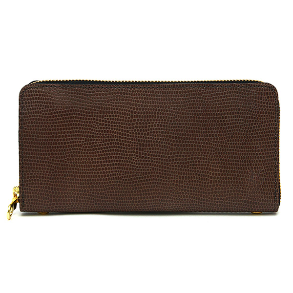 墨田区の染革工場にAGILITYが一から依頼した、メイドイン東京のオリジナルレザーです。タンニンでじっくりと鞣した牛キップを、ドラムと呼ばれる大きな樽の中に入れて回すことで、革全体が揉まれ柔らかさが生まれます。革の厚みを均一に揃えた後、リザード(トカゲ)の鱗模様を型押し(エンボス)した革です。全体に下色を吹き付け、凸部分のみを手作業で濃色に染めていく頭ハリという工程を経て、型押しに立体感を出しています。最後に高圧アイロンで表面に艶を与え、高級感とエレガントさを持った革に仕上げています。使っていくと艶があがり、より一層深い色に変化していくエイジングを愉しめます。細かい型押しのため、傷や汚れが目立ちにくいのも特長です。【アフターケア】乾拭き程度で良い状態を保てます。