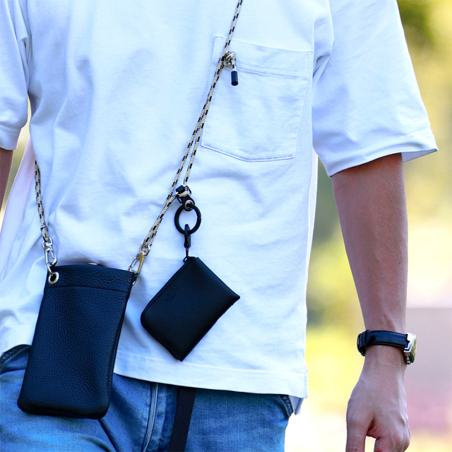 ハンギングベルトのように、ライフスタイルに合わせてチョイスした革小物・ポーチなどを下げれば身軽な外出が可能です。。
